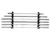Horizontal rack holds up to six barbells Made of 7-gauge steel for extra strength and durability Racks keep the bars close enough to the wall where they won't stick out and interfere with space Measures: 31.5" and 5.5"D Mounting hardware not included.