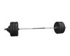 A 300 lb. weightlifting set that is perfect for everyone. Weight set features a pair of 45 lb., 35 lb., 25 lb., and 10 lb. First Place Black Rubber Bumper Plates, as well as (4) 5 lb. and (2) 2.5 lb. PB Extreme Rubber Encased Grip Plates. A 20kg First Place Olympic Bar and Lock-Jaw weight collars are included. Rubber Bumpers will protect your floors and deaden the sound if dropped. Olympic Bar is chrome-coated and has brass bushings in each sleeve.