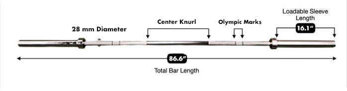 • Dual knurl marks with no center knurl makes it great for Olympic lifting.